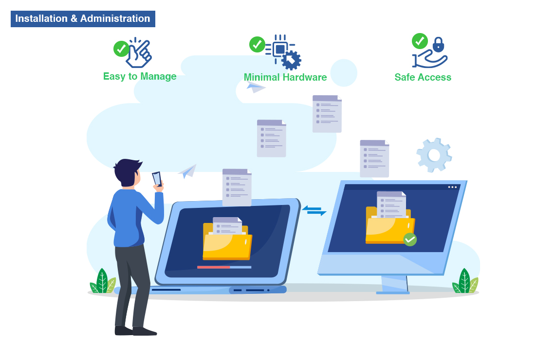 - User details, access rights are only stored ensuring support for 1000s of users with minimal hardware